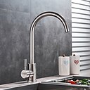 Grifo mezclador de fregadero de cocina de acero inoxidable, grifos de cocina monomando giratorios 360 montados en cubierta, con grifos de recipiente de manguera de agua fría y caliente |