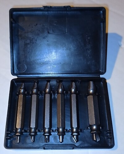 Utmärkt värktyg då skruvskallen är utnött. Det är bara att stoppa i svinpitten och dra åt vänster motsols och skruven följer med ut! Utmärkt värktyg då skruvskallen är utnött. Det är bara att stoppa i svinpitten och dra åt vänster motsols och skruven följer med ut!