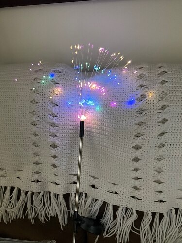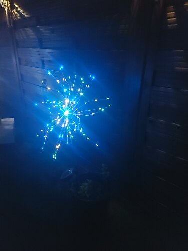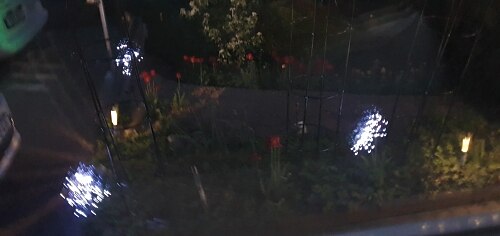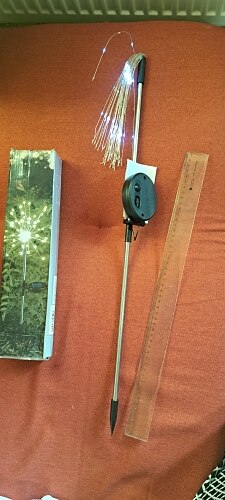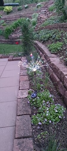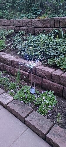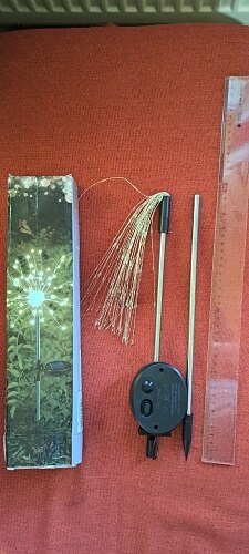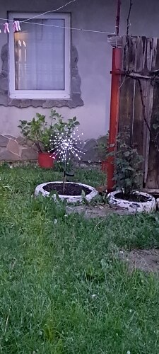 E spectaculoasă. Voi mai comanda acest produs. Când e aprinsă are un joc de lumini și arată exact ca o ploaie de artificii. După ce o montezi ajunge la o înălțime de 50- 60 cm, depinde de cât o înfigi in pământ.