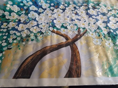 Definitely oil painted, not a print. Colours just like the photo. It’s textured, which is what I was after. I wasn’t planning on spending so much on a painting but couldn’t find anything I liked other than this. Now to make the wood frame to stretch it on and hope we do a good job at stretching it! It was packed really well too. Definitely oil painted, not a print. Colours just like the photo. It’s textured, which is what I was after. I wasn’t planning on spending so much on a painting but couldn’t find anything I liked other than this. Now to make the wood frame to stretch it on and hope we do a good job at stretching it! It was packed really well too.