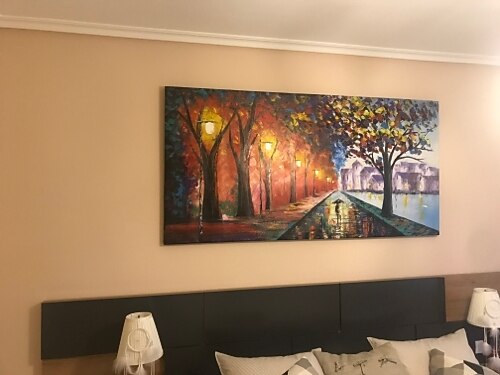 pintura al oleo hecha a mano pintada a mano arte de la pared lluvia abstracta arbol de la calle lampara cuchillo paisaje decoracion del hogar decoracion lienzo enrollado sin marco sin estirar