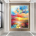 pintado a mano puro puesta de sol mar cielo océano playa paisaje colorido abstracto arte de la pared pintura al óleo panorámica extra grande sobre lienzo |