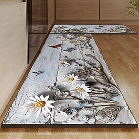 Alfombra de madera con diseño de margaritas, alfombra de cocina, antideslizante, a prueba de aceite, alfombra para sala de estar, alfombra interior y exterior, decoración de dormitorio, alfombra de