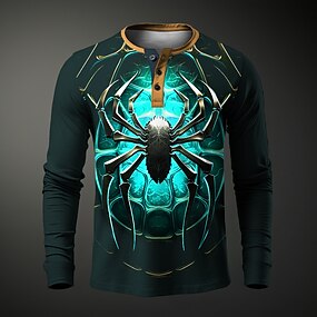 Hombre Graphic Arañas Henley Shirt Manga Larga Impresión 3D Moda Diario Casual Casual Festivos Noche Primavera & Otoño Azul Piscina Amarillo Rojo Morado Henley Camiseta Henley