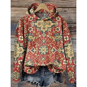 Sudadera con capucha para mujer pulóver de gran tamaño de manga larga casual gráfica floral paisley moda vintage estilo occidental con capucha ropa de calle diario impresión de vacaciones bolsillo