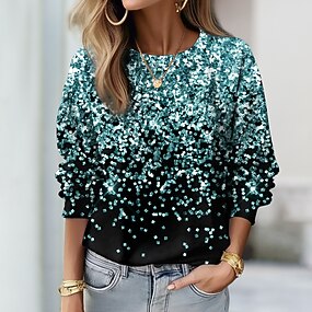 Mujer Sudaderas Graphic Casual Manga Larga Cuello Barco Tops regulares Calle Uso Diario Casual Estampado Azul Piscina Marrón Verde Trébol Azul claro Primavera Otoño Invierno