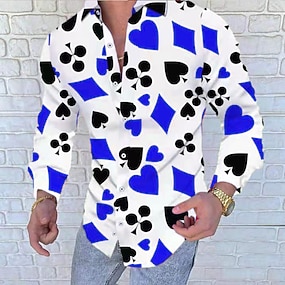Hombre Corazón Amor Degradado de color Camisa de raso Abotonar la camisa Manga Larga Moda informal Fiesta Regalo Festivos Primavera Otoño Cuello Vuelto Impresión 3D Rojo Azul Piscina Morado