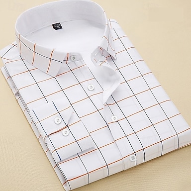 Hombre Camisa para Vestido Comprobar camisa Camisa con botones Camisa de cuello Ajedrez Boda Trabajo B C D E Manga Larga Cuello Vuelto Primavera & Otoño Ropa Abotonar
