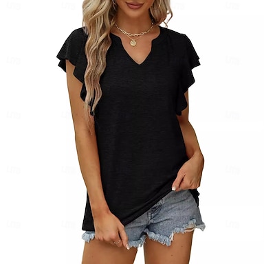 Mujer Camiseta Tops de verano Tee Graphic Plantas Elegante Clásico Manga Corta Escote en Pico Tops largos Diario Ropa de fiesta de noche Deportes Azul Piscina Gris azulado rojo púrpura Negro Blanco