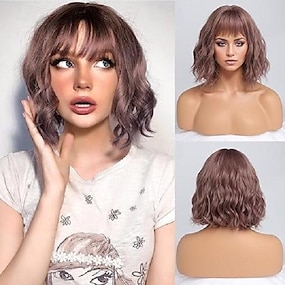 Pelucas rubias ombre para mujeres peluca corta ondulada con flequillo peluca bob rubia ceniza con raíces oscuras cabello sintético natural de longitud media para uso diario y fiesta y pelucas de