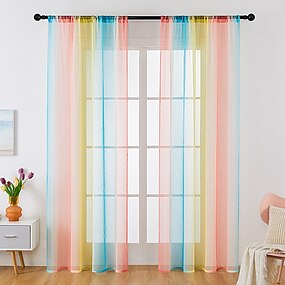 Junio Mes del Orgullo LGBT Cortina Semi Transparente Arcoíris Juego de Cortinas para Habitaciones de Adolescentes Panel de Ventana Voiles Caída para Cuarto de Niñas/Sala de Niños/Cuna/Sala de Estar 1