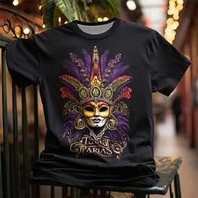 Máscara gráfica de carnaval Mardi Gras Diseñador diario Retro Vintage Camiseta con estampado 3D para hombre Camiseta deportiva Vacaciones al aire libre Salir Camiseta Morado oscuro Negro Morado
