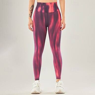 Mujer Pantalones de yoga Mallas Leggings de Yoga Cintura elástica Levantamiento de tope Control de barriga Pilates Entrenamiento de gimnasio Rutina de ejercicio Pantalones Tie-dye Morado Otoño