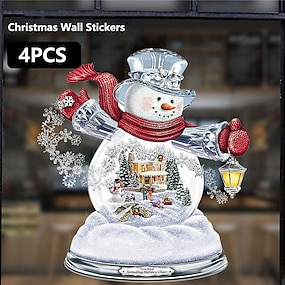 4 piezas de pegatinas de pared de ventana de navidad adornos de cristal pegar pegatinas de ventana de árbol de navidad extraíbles escultura giratoria decoración de tren santa claus decoración de