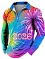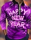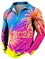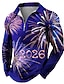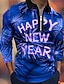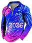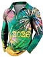 Año Nuevo Hombre Fuegos artificiales Polo Manga Larga Camisas de polo Diseño Casual Ropa Cotidiana Atuendo para festival Impresión 3D Polo con cremallera de un cuarto Primavera Otoño Invierno Azul