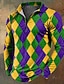 Carnaval Hombre Tiras horizontales Camisetas polo con cremallera Manga Larga Camisas de polo Diseño Casual Exterior Atuendo para festival Impresión 3D Primavera Otoño Amarillo Morado