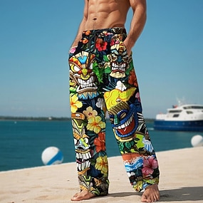 tiki tropical aloha resort para hombres pantalones casuales con estampado 3d pantalones cintura elástica con cordón ajuste holgado pantalones de playa de verano de pierna recta s a 3xl