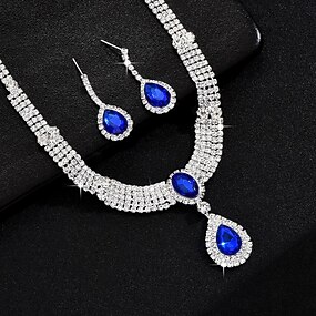 Juego de Joyas 1 juego Zafiro Piedra Preciosa y Cristal Piedras preciosas sintéticas Pendientes Collare Mujer Fiesta damas Lujo Bonito Gota Gotas de Ojos Conjunto de joyas Para Fiesta Boda Ocasión