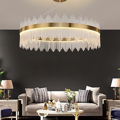 Diseño redondo de círculo de luz colgante led, lámpara de araña led de cristal moderna de 60 cm para sala de estar, diseño creativo de lujo, lámpara de oro, lámparas colgantes de isla de cocina