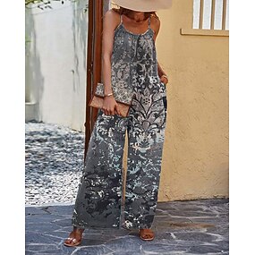 Mujer Normal Mono Ropa de calle Floral Sin Mangas Escote en U Bolsillo Estampado Calle Fin de semana Ajuste regular Gris Oscuro Verano