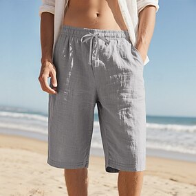 Hombre Pantalones Capri Pantalones cortos de lino Pantalones cortos de verano Pantalones cortos de playa Correa Cintura elástica Plano Comodidad Transpirable Medio corto Exterior Diario Playa