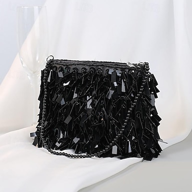 Mujer Bolso Tote Clutch Bolso de noche Bolso de Noche Minibolso de Mano Poliéster Fiesta Fiesta de Boda Playa Lentejuela Cremallera Cadena Transporte múltiple Color sólido Plata Negro Blanco