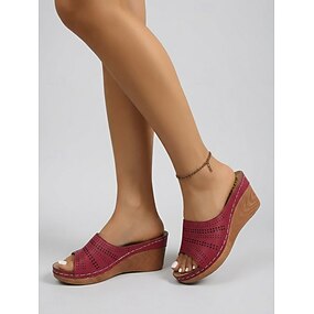 Sandalias de cuña rojas para mujer: sandalias de verano perforadas y cómodas, sin cordones, con plantilla de masaje para viajar. &uso diario