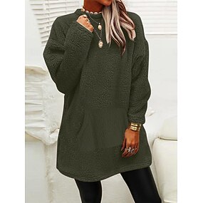 Mujer Bloque de color Cálido Teddy Borroso Manga Larga Sudadera Tops largos Calle Casual Botones Bolsillo Negro Rosa Vino Azul Piscina Verde Trébol Otoño invierno