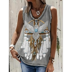 Top Camisón Sin Mangas Top Boho Top Occidental Top Gráfico Floral Animal Bohemia Vintage Casual Sin Mangas Cuello U Tops Regulares Diarios Vacaciones Salir Impresión Negro Caqui Gris Verano