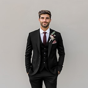 De los hombres Trajes Boda Ropa de fiesta de noche Negro Burdeos Primavera, Otoño, Invierno, Verano Traje Negocios Formal Color sólido Estándar Juego de 3 piezas Recto 2 botones