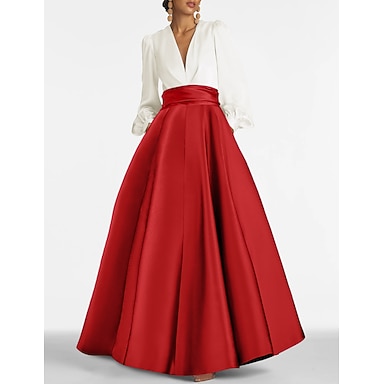 Mujer Trajes de 2 piezas Formal Invitado a la boda Elegante Minimalista Manga Larga Hasta el Suelo Escote en Pico