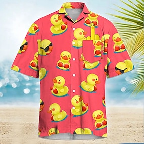 Hombre Pequeño pato amarillo Gracioso Camisa Cubana camisa hawaiana Manga Corta Hawaiano Vacaciones Festivos Ropa de playa Verano Primavera Camisa con cuello de campamento Impresión 3D Un bolsillo