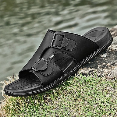 Sandalias negras para hombre con detalle de hebilla decorativa: calzado cómodo y moderno para uso diario