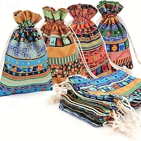 12 bolsas de regalo tejidas para joyería, coloridas bolsas con cordón bohemio, bolsas de lino con temática patriótica para bodas, fiestas, cumpleaños, celebraciones de temporada en primavera, verano,