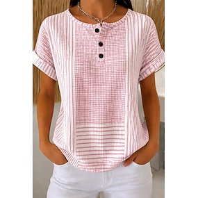 Mujer Camiseta con diseño de gofre Tops tejidos con textura Camiseta Bloque de Color Estampado Botón frontal Graphic Geométrico Abstracto Vintage Elegante Clásico Manga Corta Cuello Barco Henley Tops