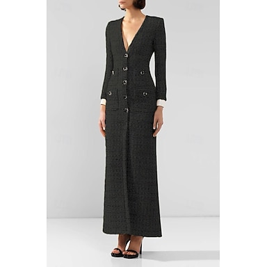 Funda / Columna Hasta el Tobillo Vestido de Fiesta Vestido Cóctel Manga Larga Cuello Barco Elegante Vintage Fiesta Poliéster Vestido de Madrina con Botones
