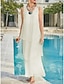 Conjuntos de Traje de Tres Piezas para Madre de la Novia Boda en la Playa Invitada Elegante Cuello Redondo Largo hasta el Suelo de Gasa con Encaje Sin Mangas y Capa incluida con Lentejuelas