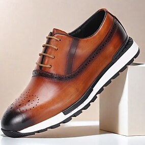 Zapatillas de piel de vacuno de primera calidad en color marrón para hombre con detalles perforados y cierre con cordones: elegantes zapatos casuales para uso diario