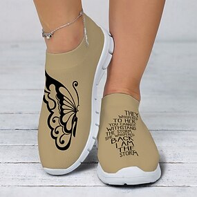Zapatillas de deporte sin cordones con diseño inspirador de mariposas en color caqui para mujer: calzado deportivo ligero y cómodo para uso informal y actividades de fitness