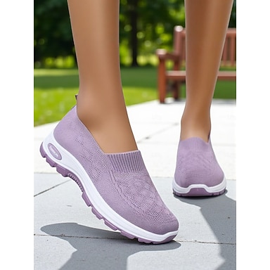 Zapatillas de plataforma Flyknit para mujer: zapatillas transpirables sin cordones para caminar, ideales para hacer ejercicio y salir de forma informal.