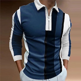 Men's Striped Zip Polo Shirts Golf Shirt Long Sleeve Polo Shirts Collared Shirts Business Casual WorkWear Formal Wear Festival Wear 3D Print Quarter Zip Polo Navy Blue Dark Green Brown