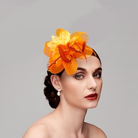 Fascinators Polyester Artificial feather Veil Hat Formal Elegant With Feather Net Headpiece Headwear Fascinators Race Day Dress