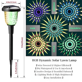 LED Solar Pathway Lights with 2 LEDs IP65 Outdoor Waterproof Auto On/Off Powered Landscape Lighting One Key Switch Warm Light/Color Light Project Beautiful Pattern On The Ground Light The Way for Yard Garden
