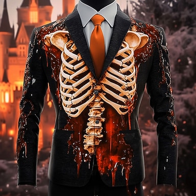 Men's Skeleton Blazer Jacket Casual Dark Festival 3D Print Spring Fall Winter Notch Long Sleeve Red Orange Green