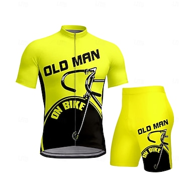 Miesten Pyöräily jersey ja shortsit Lyhythihainen Maastopyöräily Maantiepyöräily Kesä Kevät Syksy Musta Keltainen Geometrinen Raita Kirjain ja numero Pyörä Etuvetoketju Hikeä siirtävä Mukava