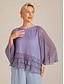 Naisten Pusero Mekkoiset topit Sifonki Topit Pitsi Topit Laskostettu Kimallus Tyylikäs Tiukka pyöreä kaula-aukko Tavalliset topit Häävieras Bile Vaalean sininen Kevät Syksy