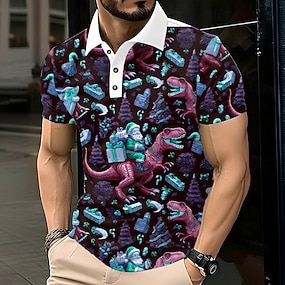 Christmas Miesten Joulupukki Dinosaurus Polo Lyhythihainen Poolopaidat Kauluskäänne Vapaa-aika ulko- Katu Festivaalin asu 3D-tulostus Napit Kevät Syksy Talvi Purppura Apila
