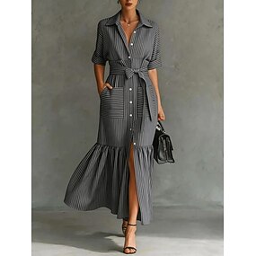Naisten midi-mekko A-linjainen mekko Rentomekko Talvimekko Heiluva mekko Muoti Katumuoti Kypsä Virallinen Ulkona Loma Säännöllinen istuvuus Kukallinen Pitkähihainen Pyöreä kaulaaukko Musta