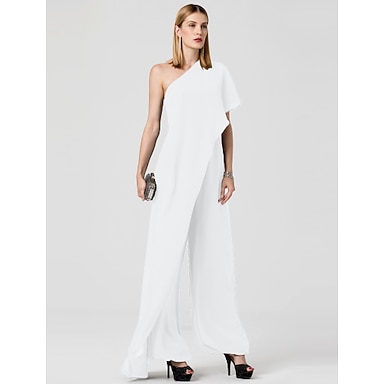 Haalarit Häät Vieraana Elegantti Virallinen Häät Vastaanotto Lattia Pituus Lyhyt Hihainen Yksi Olkapää Stretch Crepe Rypytettynä
