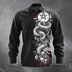 Pääkallot Käärme Kauhu Miesten Button Up paita Pitkähihainen Juhlat / Ilta Syksy Talvi Kevät kesä Paitapuserokaula-aukko 3D-tulostus Ohut Musta Polyesteri